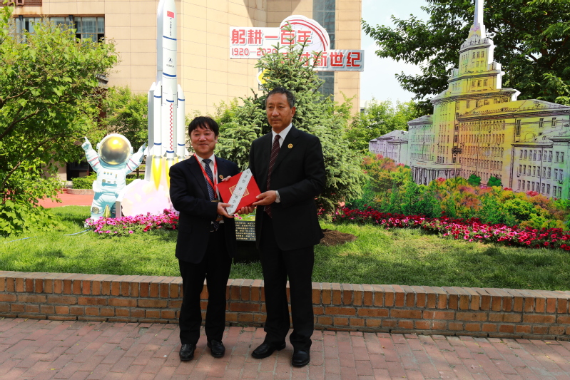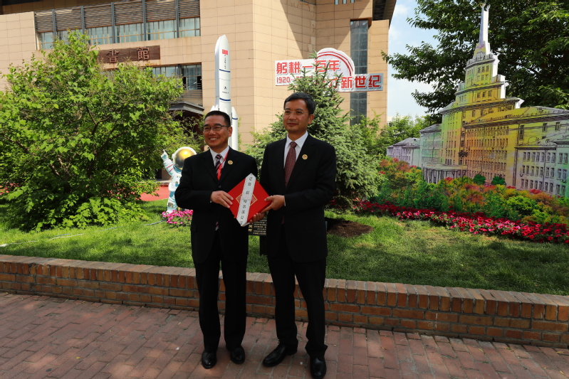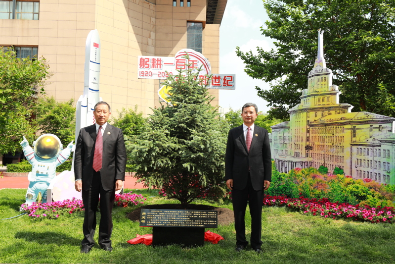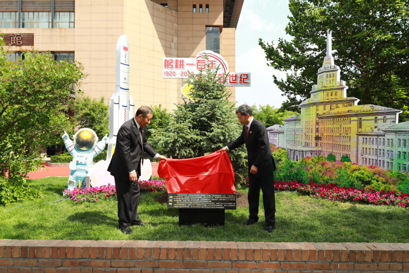 哈工大报讯(梁英爽/文 辛然/图)躬耕一百年,育才新世纪。6月7日,太空返回-哈工大一校三区土壤培育“问天树”仪式在我校图书馆前举行。校党委书记熊四皓、校长周玉为“问天树”石碑揭幕,并分别为威海校区、深圳校区代表赠送太空返回土壤。