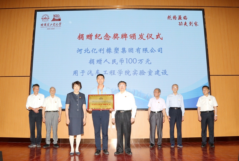 河北亿利橡塑集团有限公司捐赠人民币100万,用于汽车学院实验室建设