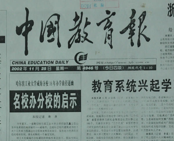《中国教育报》头版头条发表署名文章《名校办分校的启示——哈工大威海分校16年办学曲径通幽》,全面报道哈工大(威海)的创建与发展。