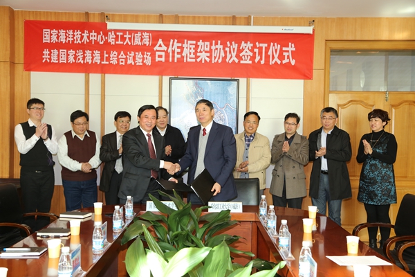 国家海洋技术中心与哈工大(威海)共建国家浅海海上综合试验场合作框架协议签订仪式在主楼1号会议室举行。