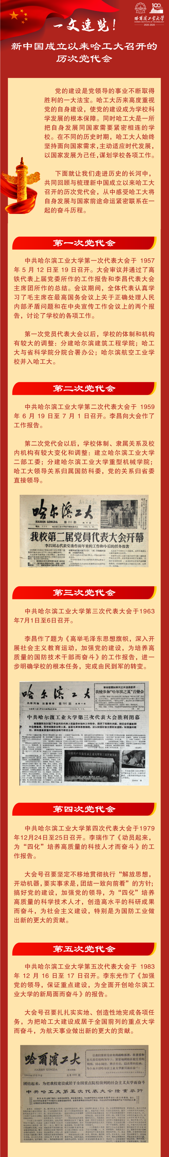 一文速览 | 新中国成立以来哈工大召开的历次党代会
