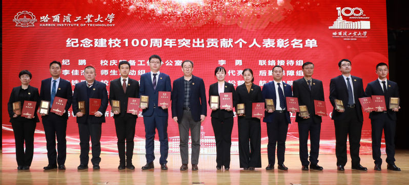 建校100周年纪念活动的成功举办,离不开许许多多哈工大人默默的奉献与付出,学校因此研究决定设立熠耀奖。现场观众观看了向“熠耀奖”群体致敬短片,共同向这些无私奉献的幕后英雄们致敬。