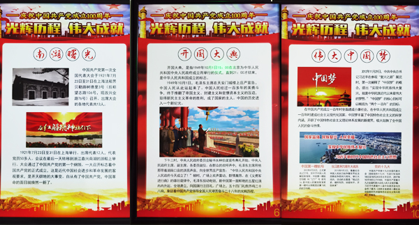 根据校区党史学习教育要求,为方便广大师生自学提高,由理学院党委主办的《党的光辉历程》主题展览于3月24日在主楼大厅东侧长廊开展。