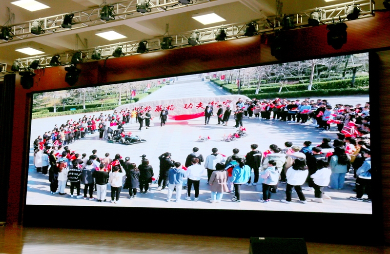 “唱支山歌给党听,我把党来比母亲……”仪式伊始,大屏幕播放校区青年唱红歌的视频,歌声中充满对党的满腔深情,对新中国的无限热爱。