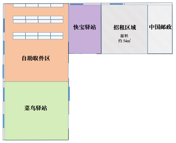 招租区域为独立区域,定向引进京东快递服务业务,需以形象店的方式(包括门店装修布局、服装、标准化管理等)进驻。
