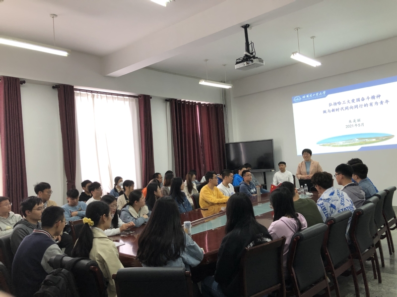5月14日上午,计算机学院党委副书记朱美丽走进2019级硕士生班级,给硕士毕业班的同学带来了一堂名为“弘扬哈工大爱国奋斗精神、做与新时代同向同行的有为青年”的专题党课。