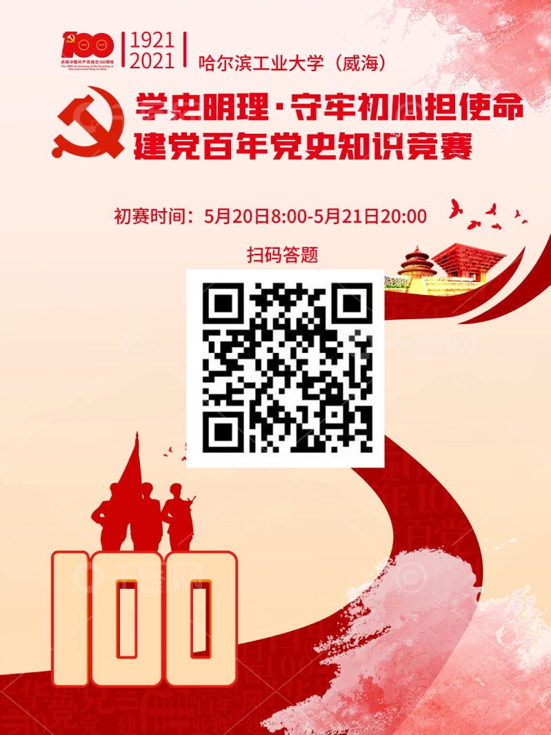 回忆百年峥嵘,争做时代新人。为庆祝中国共产党成立100周年,深入贯彻落实习近平总书记在党史学习教育动员大会上的讲话精神,进一步提高我校各单位党员同志的思想认识,强化责任担当,增强“四个意识”、坚定“四个自信”、做到“两个维护”,从党史中不断汲取精神力量,矢志投身新时代夺取中国特色社会主义伟大胜利的新征程,现面向我校全体党员开展“党史知识竞赛”活动。