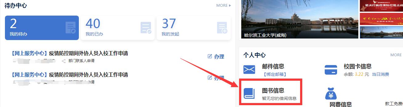 学校网站à校园门户(使用学校统一认证账号登录)à个人中心à图书信息,进入我的图书馆,查询相关借阅情况。