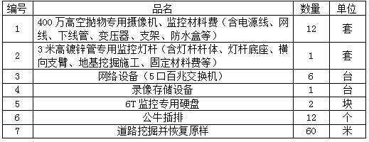 为维护校区广大师生的利益,加强高空抛物现象的责任落实,分别在高层18号楼、19号楼、21号楼安装高空抛物技防设备,项目包含设备采购及安装,每座住宅南北两侧各设2个监测点,共计安装12个监控点。设备清单如下: