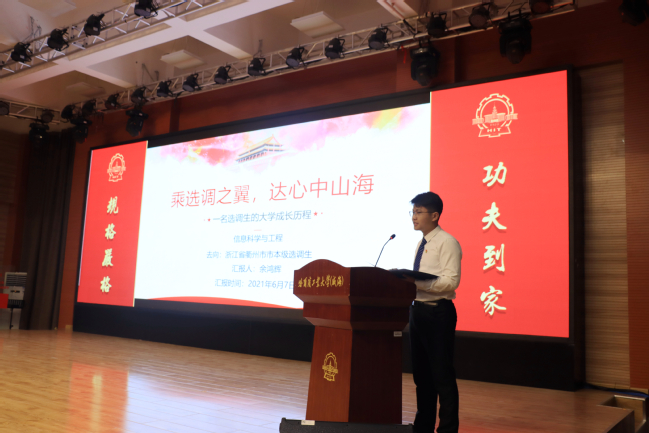 余同学从自己大学四年成长历程入手,分享了自己成为选调生的初衷,并指出选调生的成长并非一朝一夕,而是要不断地历练自我,提升本领。此后,就浙江省选调流程、考情做了具体的分享。