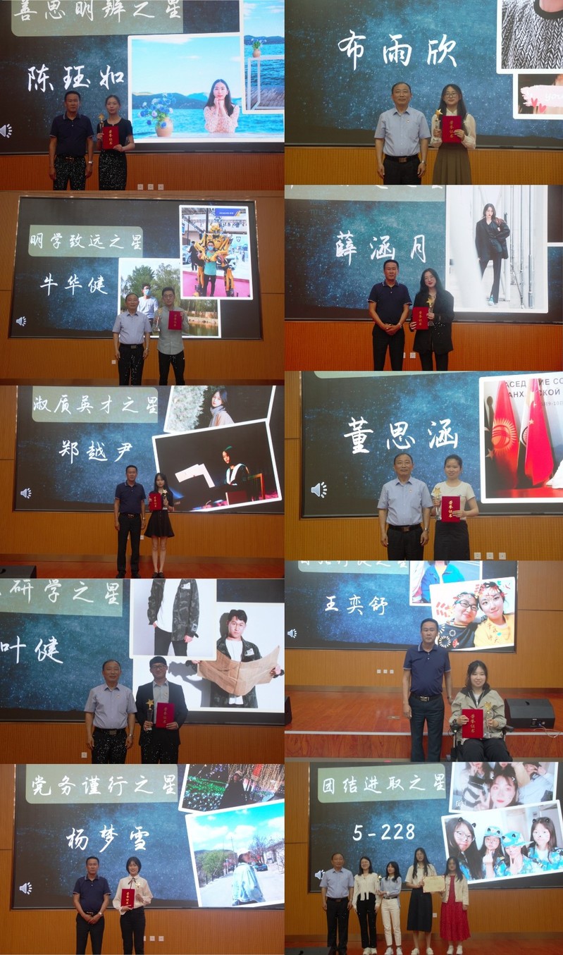 此次典礼共有十名优秀个人和团体为大家分享了自己的学习和生活故事。他们是专业免推第一、在学术方面曾获得多项国级奖项、在创新竞赛方面也收获颇丰的善思明辨之星——陈珏如,积极参加国际化交流活动、以优异表现为校区国际化作出贡献、向世界展示中国青年形象的明学志远之星——牛华健,刻苦奋进、一往无前、学习与学生工作两手抓、成立哈工大威海招生新媒体中心的淑质英才之星——郑越尹,出色完成各项学生工作、在各个高校论坛中积极活跃、获得多项奖学金并在经济学领域取得傲人成绩的砥志研学之星——叶健,积极组织各项党支部活动、圆满完成党支部交付的任务、将党和人民的嘱托融于一次次切实可行的党日活动、用自己的方式向党的百年华诞献礼的党务谨行之星——杨梦雪,还有学习生活和科研竞赛、学生工作和社会实践全面发展、作为班长不辞辛劳、积极奉献、带领班级获得多项荣誉的求实奉献之星——布雨欣,获得哈工大全球校友创新创业大赛决赛优秀奖、“校长杯”创业竞赛一等奖兼特殊贡献奖等创业奖项获得者以及威海梦之旅广告设计制作服务有限公司创立人的创业奋进之星——薛涵月,脚踏实地、勤奋刻苦、,平均学分绩和综合学分绩均位列院系第一、获得早稻田大学国际化创业人才培养项目最高奖项等多项荣誉的研精覃思之星——董思涵,积极向上、热爱生活、克服困难、自强不息、克服身体上不便努力奋进、拼搏热忱的自强行健之星——王奕舒,温暖有爱、每个成员逐渐成长、蜕变成更好的自己的团结进取之星——5-228寝室。
