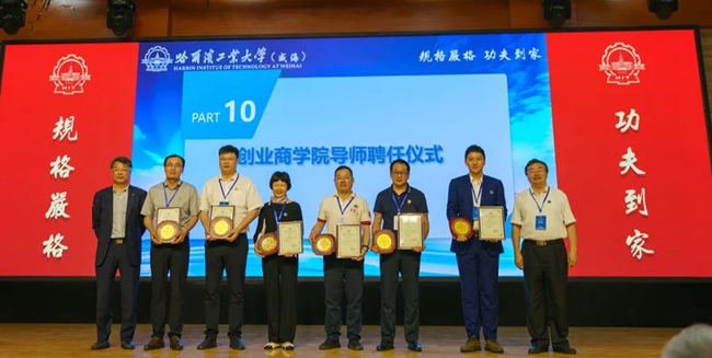 徐晓飞和哈工大(威海)创业商学院院长张陆洋教授共同为新聘导师徐学平、李川、胡棋、刘伟、王洋、王永琨颁发聘书。