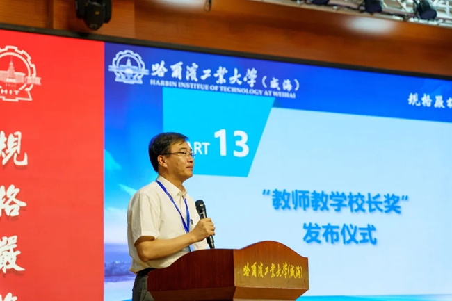 哈工大(威海)副校长姜永远宣读教育教学校长奖设置及评选办法。为激励广大教师坚守育人初心,奋发作为、追求卓越,促进校区人才培养质量不断提高,校区特设立“教育教学校长奖”,包括“教育杰出贡献奖”和“青年教师卓越奖”两个奖项,以表彰在校区建设发展和人才培养过程中作出突出贡献的资深教师和青年教师。“教育教学校长奖”的种子资金和项目资金分别来自徐晓飞等人的教学成果奖奖金和校友捐赠。