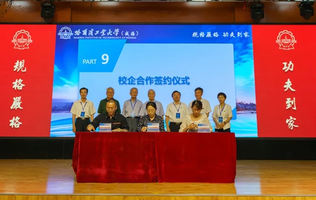 哈工大(威海)创新创业园有限责任公司常务副总经理石景卉与威海水知乐户外用品股份有限公司董事长兼总经理梁晟玮、山东三润物联网有限公司董事长白洪彦签署校企合作框架协议。石景卉与潍坊大世智能科技有限公司董事长朱世波签署战略合作协议。哈工大(威海)新能源学院孟凡刚教授与威海天力电源科技有限公司总经理位世波签署校企合作框架协议。哈工大(威海)汽车工程学院副院长王剑锋与威海市晶合数字矿山技术有限公司副总经理于艳萍签署战略合作协议。哈工大(威海)信息科学与工程学院副院长赵宜楠与山东云创教育科技有限公司总经理荣妍姝签署校企合作框架协议。