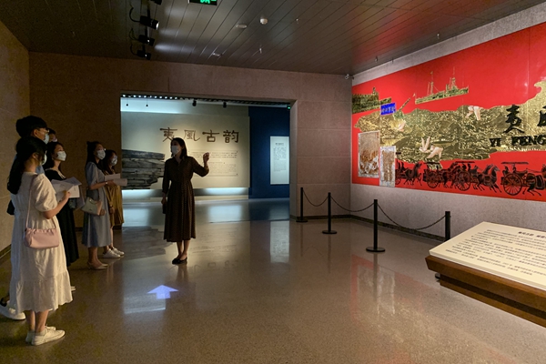在威海市博物馆戚菲主任的带领讲解下,支部党员们共同参观了威海市博物馆的专题展览“夷风古韵 威震海疆”,展览包含夷风古韵、秦汉华章、海象万盛、道教圣地、威震海疆、甲午风云、米字旗下、一战华工、烽火岁月、魅力威海等十个部分,记录了威海市从新石器时代到庶卫屯兵,从甲午战争到如今飞速发展的历史过程。从春秋战国时期车来船往的海运古道,到明清时期抵御倭寇、威震海疆的威海卫,这座海滨小城在往来贸易、巩固边防方面发挥着重大的作用,然而在经历了战争的摧残后,威海又多了“甲午之殇”的烙印。1921年中国共产党成立以来,威海人民在党的领导下进行着艰苦卓绝的斗争,在抗日战争中前赴后继、血洒疆场,在解放战争期间担负着保卫家乡和支援前线的双重任务,恢复发展各项事业。如今威海飞速发展,硕果累累,威海人民更是感受到在中国共产党的领导下从站起来到富起来、再到强起来的伟大历程。
