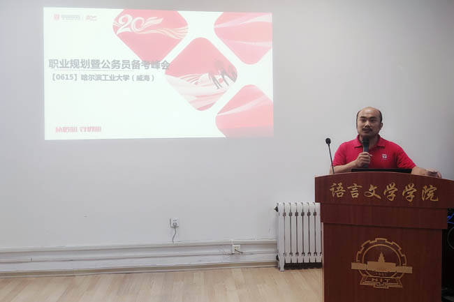 6月15日晚,语言文学学院于B315举办公务员选调生交流分享会。活动邀请青岛华图教育校长蒋红增老师向同学们介绍了公务员、选调生等工作的就业前景以及公务员考试的相关内容,帮助同学们选择备考。语言文学学院党总支副书记王莹参加本次会议。