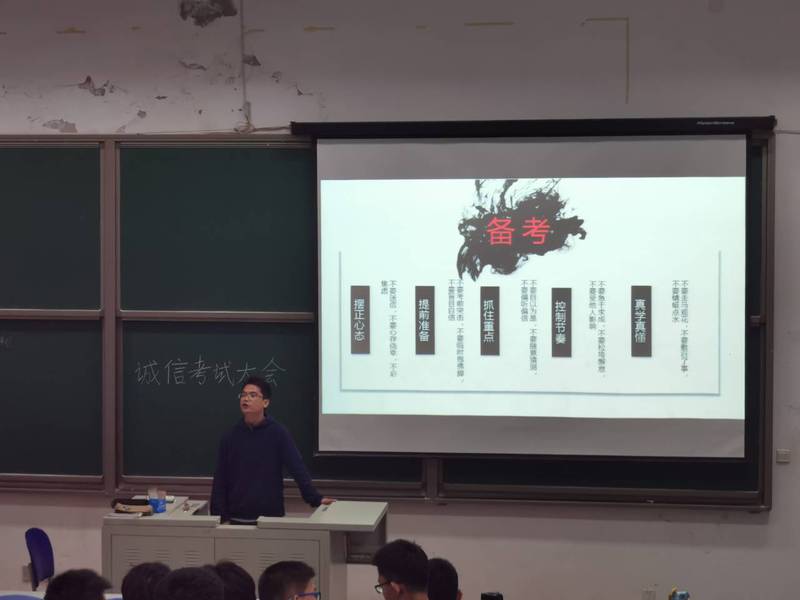 辅导员采用召开年级大会、参加班级主题班会等不同形式对同学们进行教育。辅导员在会议中详细讲述了学校对于考试作弊等违纪行为的界定,辅以往届学生由于考试违纪受到处分的真实案例,向同学们强调诚信考试的重要性。辅导员强调考试违纪是不可逾越的红线,作为青年大学生一定要端正自身态度,积极备考,诚信考试,考出自身真实成绩。在考试月来临之际,诚信考试教育进一步深化同学们心中诚信考试的理念,引导广大同学端正考风、专心备考。