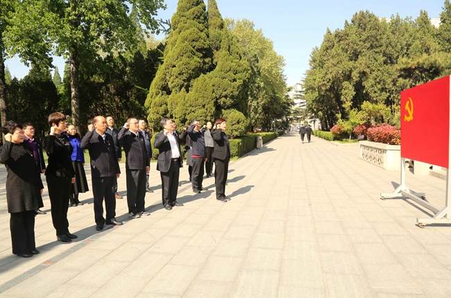 校区党委理论学习中心组在沂蒙党性教育基地华东革命烈士陵园瞻仰革命烈士纪念塔,重温入党誓词。