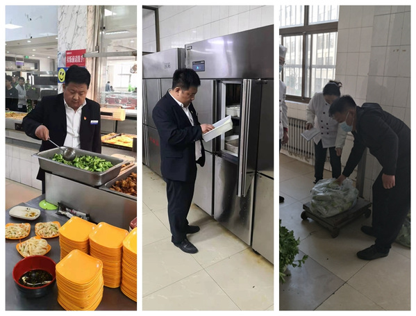20多年的饮食工作,让高飞养成了早起的习惯,一年365天,每天5点起床,当大多数人还在睡梦中的时候,他就开始了他忙碌的一天。他明明有自己的办公位,而我们很难在办公室看到他,却总能在各个餐厅的操作间、库房、售饭区里找到他的身影。分管采购工作的他,每天必定会到餐厅卸菜台检查原材料质量,肉品和蔬菜要确保新鲜、证件齐全。他知道,原材料的质量关系到师生的饮食安全,必须严格把控,丝毫不能马虎。
