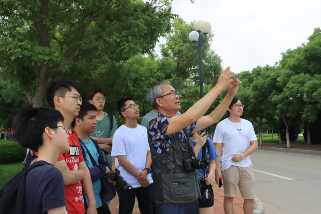 王晓光是中国摄影家协会会员、山东省艺术摄影学会艺术顾问、威海市摄影家协会名誉主席、威海市政协摄影联谊会副会长、威海市精品旅游促进会副会长兼秘书长。在主楼广场和日月湖边,王晓光以自己拍摄的照片为同学们讲述了在不同角度如何更好的表现整体氛围与画面的细节,并针对同学们所提出的问题进行了专业而全面的解答。在日月湖边拍摄校园景色时,王晓光通过对于不同构图、角度、焦段的选择,指导同学们拍摄出了不同风格的照片,并指出在室外采风时,随机出现的人、事、物都可能促成一张好照片,希望同学们能够通过这一次的摄影实践课程,将平日里学习到的知识应用于实践。