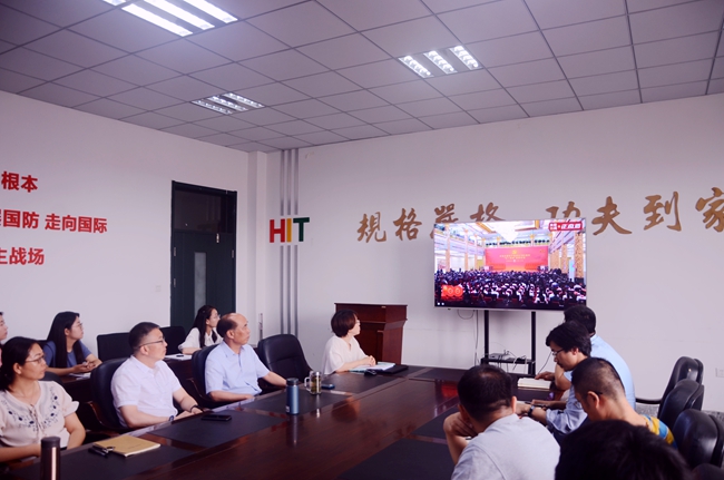 哈工大副校长、威海校区校长徐晓飞与张淑娣、王建文、钟诗胜、王彦岩等校区领导与机关党委部分党员在主楼2号会议室观看直播。在雄壮的《忠诚赞歌》乐曲声中,习近平总书记为29位“七一勋章”获得者颁授勋章。全场响起热烈的掌声。永葆革命本色的战斗功臣、工匠精神的杰出代表、点亮乡村女孩人生梦想的人民教师……29位“七一勋章”获得者怀着自己的信仰立足本职、默默奉献,这些平凡英雄的事迹给与更多人力量和信仰,成为照亮这个时代的星。观看颁授仪式的师生为每一位勋章获得者的事迹肃然起敬,现场掌声雷动、经久不息。