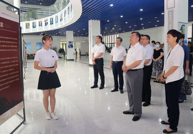 在讲解员的引导下,与会领导共同参观见学。大家在展板前凝神驻足,认真倾听沂蒙老区的红色故事和哈工大的奋斗故事,为老区人的大义和大爱、军民的鱼水深情、哈工大人许党报国的忠诚深深震撼和感动。