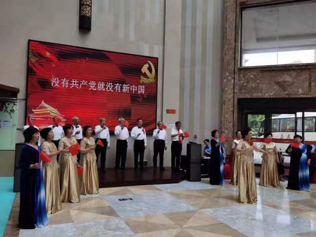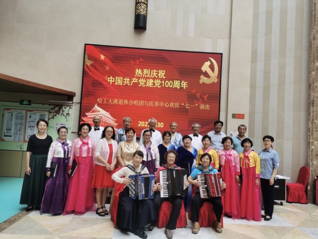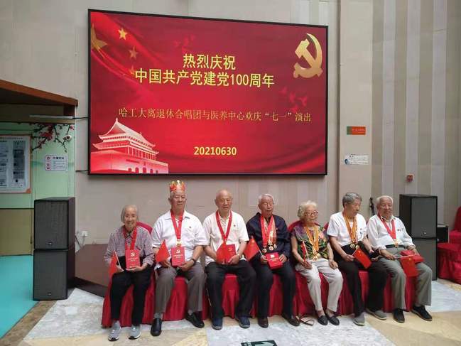 为庆祝党的百岁生日,6月30日上午,离退休合唱团在离退休办副主任李华军带领下,到威高医养中心为老党员进行慰问演出。