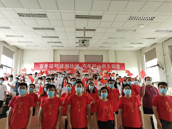 7月1日上午8时,材料科学与工程学院师生党员和积极分子代表在功学楼203教室集体观看庆祝中国共产党成立100周年大会的现场直播。