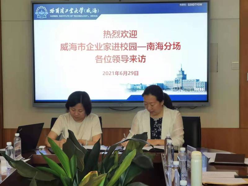 在观看哈工大(威海)以及南海新区宣传片之后,马海鹰介绍了学校专业设置、毕业生就业数据以及校企合作情况,邀请南海新区今年组团来校区开展校园招聘活动,增进学生对于南海新区企业的了解,为高校毕业生留威就业贡献更大的力量,希望进一步推动校企合作增进人才合作的深度。
