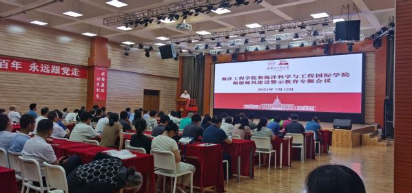 7月12日晚,海洋工程学院在大学生活动中心多功能厅召开师德师风建设警示教育专题会议,会议由学院党委书记赵常信主持,学院全体教职工参加了会议。