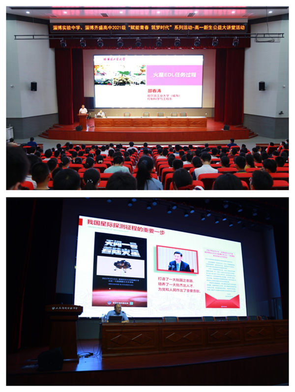 7月13日,哈工大(威海)控制科学与工程系主任邵春涛博士应邀来到淄博实验中学,为学生们做了“火星EDL任务过程”的科技专题讲座,淄博招生宣传组组长贾广田一同前往。
