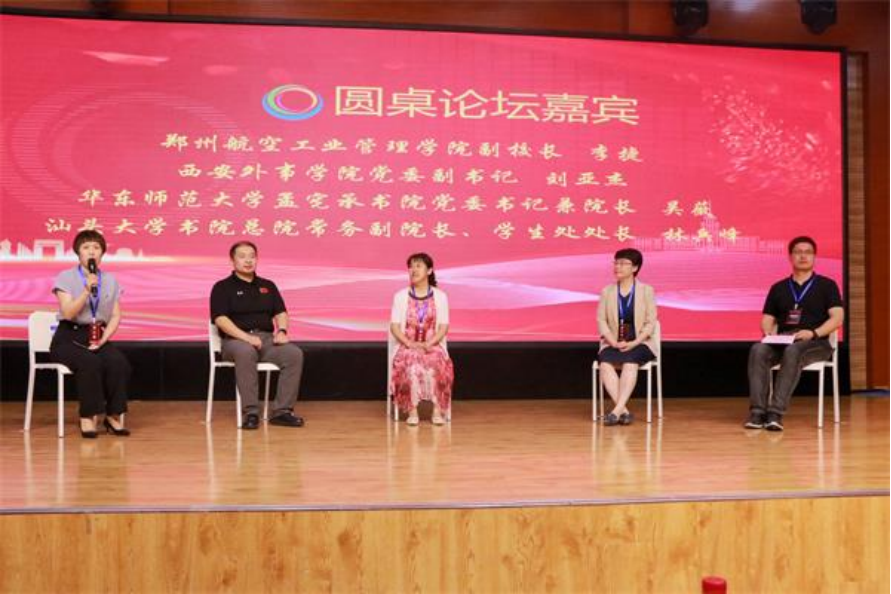 随后,郑州航空工业管理学院副校长李捷、西安外事学院党委副书记刘亚杰、华东师范大学孟宪承书院党委书记兼院长吴薇、汕头大学书院总院常务副院长、学生处处长林兵峰四位嘉宾围绕如何通过书院管理模式优化来提升书院建设的内生动力、如何有效协调两“院”间的关系以及新百年我国高校书院建设改革创新发展的着力点三个议题开展圆桌论坛。