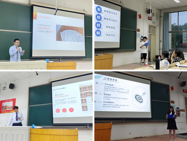 本次参评按照19级、20级顺序进行述职汇报,参评班级依次上台进行ppt展示,评委由出席现场的老师和19级、20级学生代表担任。参评班集体从学风建设,党团建设,科技创新,社会实践,学生工作五个方面展现出了班级凝聚力及班级建设的各项成绩,获得老师和同学的称赞。最终1908501班,2008308班获得星光灿烂班集体奖项;1908401班,2008301班,2008305班获得学风优良班集体奖项;1908202班,1908203班,1908301班,1908302班获得科技创新特色班集体奖项;1908101班,1908102班,1908201班,2008304班获得社会实践优秀班集体奖项;2008302班,2008303班,2008306班,2008307班获得学生工作优秀班集体奖项。