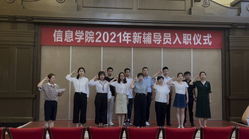 为提升新入职辅导员的职业认同感、荣誉感、责任感、使命感,帮助其尽快融入集体,7月18日下午,由信息学院学生工作办公室组织,在校史博物馆举行了2021年新辅导员入职仪式。学院党委书记王瑞玲出席仪式,学生工作办公室全体辅导员参加,入职仪式由学院党委副书记赵婷主持。