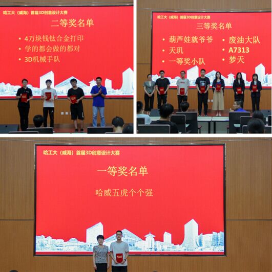7月22日,由图书馆主办、团委创新创业部和3D打印服务协会协办的首届3D打印创意设计大赛在图书馆报告厅闭幕。综合评委评分与作品在线投票的加权得分,评出一等奖1组、二等奖3组、三等奖6组、优秀奖若干组。图书馆馆长黄美香、校区团委书记胡韬、图书馆副馆长任俊霞参加了闭幕式,并为获奖团队颁奖。