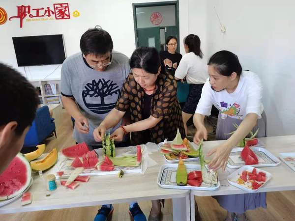 7月31日下午,海工学院工会在学院职工小家举办了“欢乐水果·创意拼盘”分享活动。来自全院的多名教职工用各式各样的水果,经过创意和精细雕琢,制作出一盘盘色彩艳丽、造型别致的水果拼盘,赢得了大家的阵阵喝彩。