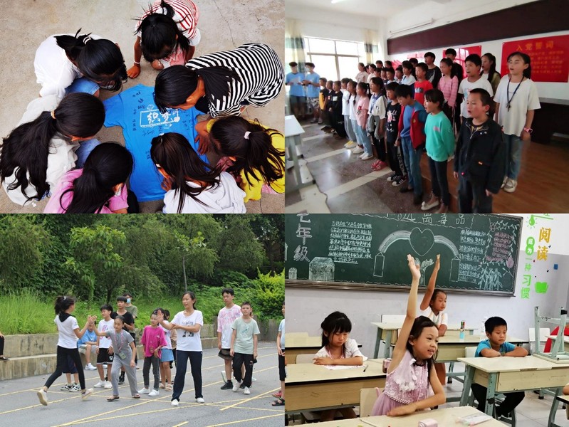 在此次活动中实践队成员们为同学们准备了科学完善的课程体系,以便于更好地进行课程的讲授。主体课程分为主题课和兴趣课两大类,主题课又分为安全类、艺术类、科普类和文化类,兴趣课又包括趣味数学、趣味英语、趣味实验、手工课和体育课。除了主题课程之外,实践队成员们还为同学们准备了思政小课堂和作业辅导课。为了提高同学们的安全意识,队员们讲解了一系列安全主题课,借此提高同学们的自我保护意识与能力;为了增强同学们对中国传统文化的认同感,队员们围绕中国诗人茶话会、戏曲之美、传统节日等主题,采用故事与知识相结合的方式,将中国传统文化娓娓道来;由于地处山区,设备有限,同学们很少能有实验的机会,许多知识过于抽象,队员们在趣味实验课上用简单的器材为大家演示了扩散现象、表面张力这些生活中的常见现象,还利用化学试验箱为同学们展示了一些简单的化学现象。