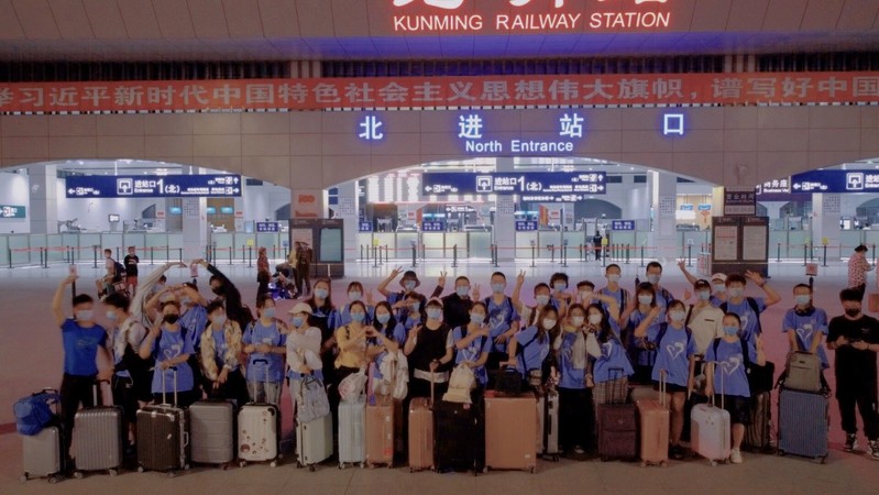 “织梦云滇”实践队由姜翔瀚老师带领40名来自哈工大一校三区、山东财经大学的同学启程前往昆明,历经三天的车程,支教队员于8月3日晚到达昆明,启程路程中,各地疫情开始反复,支教队员在紧张准备授课内容的同时,也将疫情防控工作作为本次实践的重中之重。