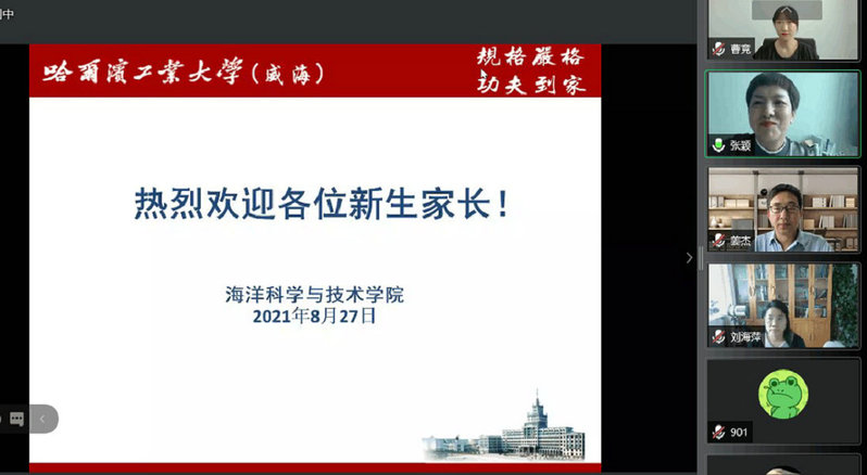 为促进学院与家长之间交流,解决新生家长疑惑,深入落实家校联系制度,8月27日15:00,海洋学院在线上举行2021级本科新生家长会。学院党委书记张颖、院长姜杰、副院长刘海萍、党委副书记曹竞、团委书记刘文军出席会议,120余位新生家长参加会议,会议由学院党委书记张颖主持。