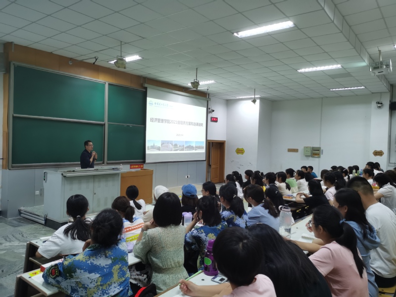 为了帮助2021级同学更好地了解培养方案及教学课程的设置,经济管理学院于9月4日晚召开2021级培养方案和选课说明会,向同学们解读了培养方案及有关选课的规定,让同学们对大学四年的学习有了清晰的了解。经济管理学院副院长高鹏斌、2021级辅导员邓平平及学院2021级全体新生参加会议。