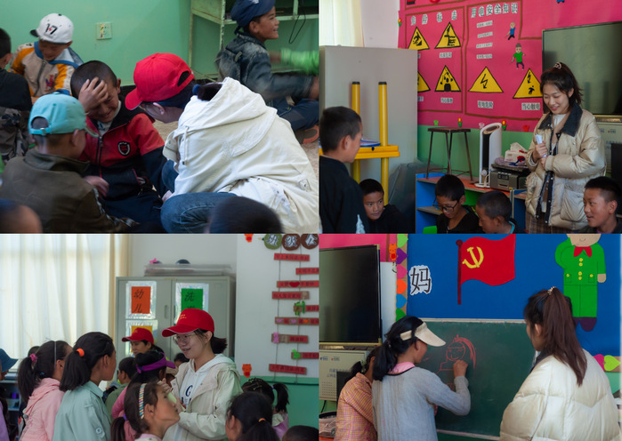 由于一部分年龄较小的孩子汉语水平有限,再加上孩子们羞涩,队员们与孩子们的前期沟通有着许多困难;初入高原许多队员身体不适,头晕、头痛,只能缓慢行动,讲课讲一段时间就会喘粗气。面对前期的种种不适与工作困难,队员们都没有放弃,合力寻找解决办法,白天上课,放学后进行开会总结会后备课到半夜也是工作日常。
