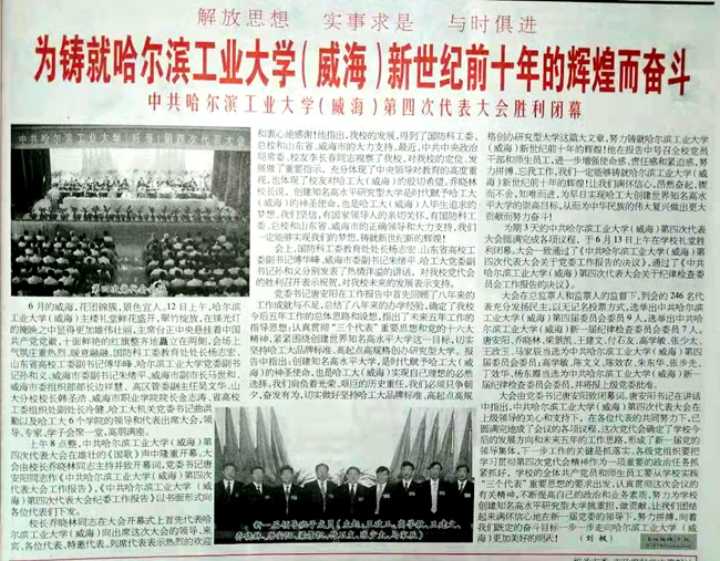 大会主题是:凝心聚力、特色发展、为建设与哈工大发展相适应的大学校区而努力奋斗。大会作出了“两步走”工作部署,提出“质量立校、特色兴校、人才强校、文化铸校、科技创新、资源拓展”六大战略,开启面向海洋、特色发展的新征程。