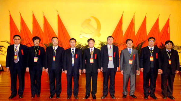 中共哈尔滨工业大学(威海)第五届委员会委员合影(左起:邢成波、张颖、曲世友、王建文、姜波、冯吉才、钟诗胜、赵国亮、丁效华)