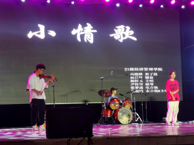 音乐爱好者协会的《阳光男孩阳光女孩》,将我们的思绪拉回童年;《手心的蔷薇》让我们感受到浪漫至死不渝;更有新生大展风采,21级经济管理学院的新生乐队演奏《小情歌》以及大一新生们演唱的《有点甜》,更是将晚会推向高潮。