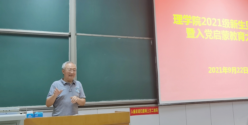 理学院2021级新生入党启蒙教育大会于9月22日晚在M108教室举行。理学院院长魏俊杰、学院党委书记李晓玲、副院长兼数学系主任范德军、副院长兼光电科学系主任董全力、学院党委副书记桑峰、院长助理秦泗甜、组织员张沥丹、辅导员单小忆出席大会。会议由桑峰主持。