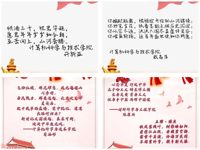 红旗如画,展现光辉历程;岁月如诗,颂扬丰功伟绩。为庆祝中华人民共和国成立72周年,讴歌伟大的中国共产党百年的辉煌,激励和引导广计算学子大力弘扬爱国奋斗精神,共同祝愿伟大祖国繁荣昌盛,计算机学院团委积极开展国庆系列活动,为祖国母亲献上美好祝福。