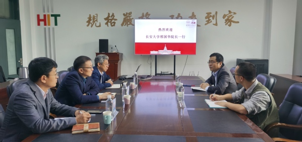 邢国华首先介绍了长安大学的办学情况、优势学科和建筑学院的基本情况,建筑学院下设建筑工程系、建筑环境与能源应用工程系、给排水科学与工程系和相关研究机构。重点介绍了土木工程专业目前面临的学科交叉需求和发展创新需求。钱宏亮结合哈工大和威海校区的发展历程简要介绍了哈工大的国际地位、学科优势以及威海校区的办学定位、发展特色、招生情况及发展态势,他详细介绍了海洋工程学院适应国家海洋强国战略贵在在学科设置上的部署和安排。桂洪斌介绍了船舶与海洋工程专业的发展历程和双一流学科建设情况。李素超介绍了校本部土木工程学院智能建造专业设置和威海校区土木专业学生培养情况。随后,双方就学科交叉建设、高水平人才引进、专业团队建设、重大项目申报、研究生培养等情况进行了深入交流。