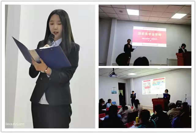 会上进行了国家奖学金、国家励志奖学金的评选,候选人以专业为单位,分别上台进行了个人展示。参评选手各有所长,在专业学习、学生工作、社会实践以及各类比赛中均取得了优异的成绩。其中,19级英语专业徐琪在认真学习的同时,积极参加学生工作、社会实践和志愿服务,切实做到了“躬身实践、志愿先行“;20级朝鲜语专业邓皓芸身兼数职,在学生工作和实践活动中不断提升自己,热心公益活动,获得老师及同学的一致好评;19级汉语言专业李洋平均学分绩专业第一,积极创新,参加多项创新创业大赛,发表众多文章,传播中文的魅力。