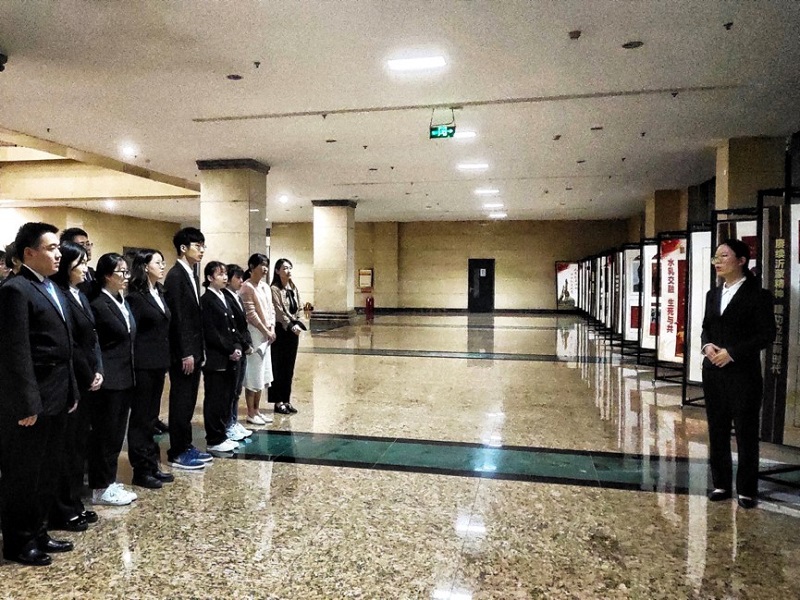 历史是最好的教科书。宣誓前,新党员们来到位于研究院1楼的沂蒙精神进校园展览前,在沂蒙实践队队员杨佳敏、闫长杰的讲解下,在一块块展板前驻足倾听,学习“水乳交融、生死与共”的沂蒙精神和哈工大许党报国的红色历史。