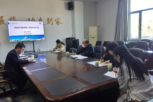 10月20日上午,党委工作部部长赵常信带队到海洋工程学院巡回指导党史学习教育第二阶段开展情况,党委工作部副部长赵婷、党工部杨薇和吴潇参加巡回指导。